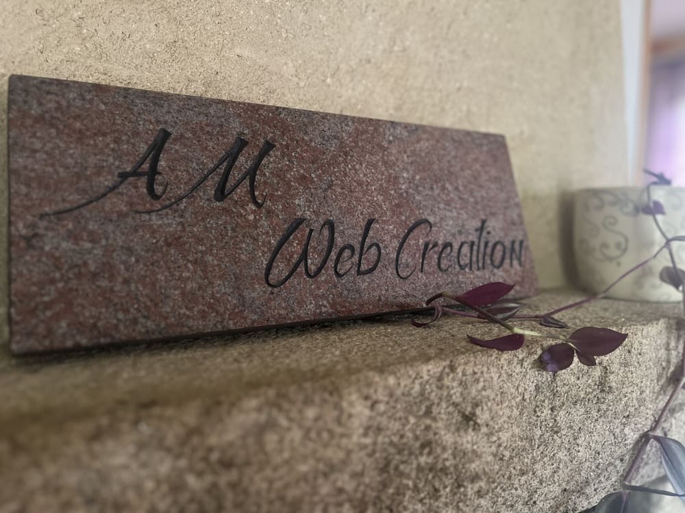 Cette enseigne décorative est née de ma volonté de lier mes deux passions : le web et le travail de la pierre.